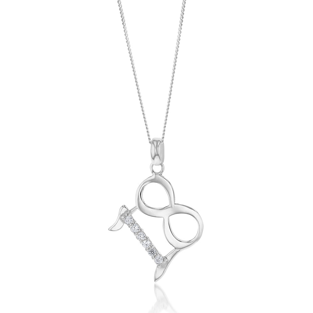Sterling Silver Cubic Zirconia On Number "18" Pendant