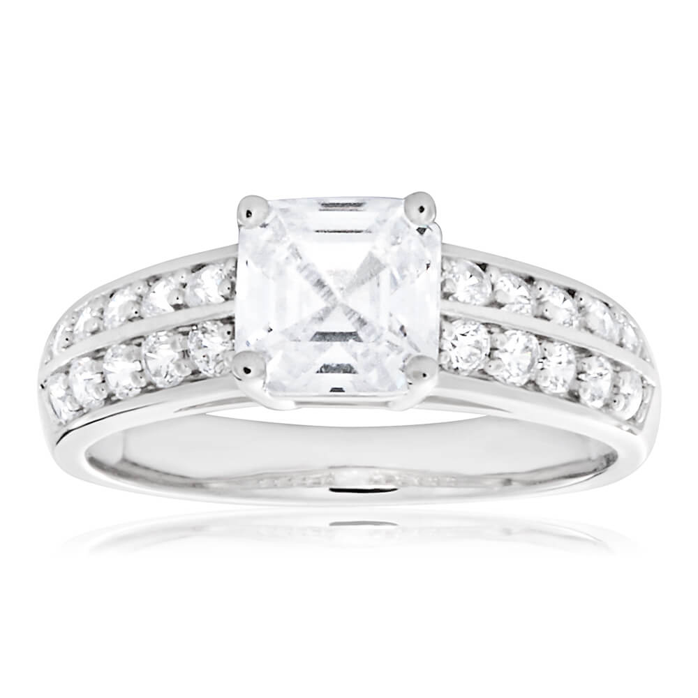 Sterling Silver Cubic Zirconia Princess Cut Channel Set Ring
