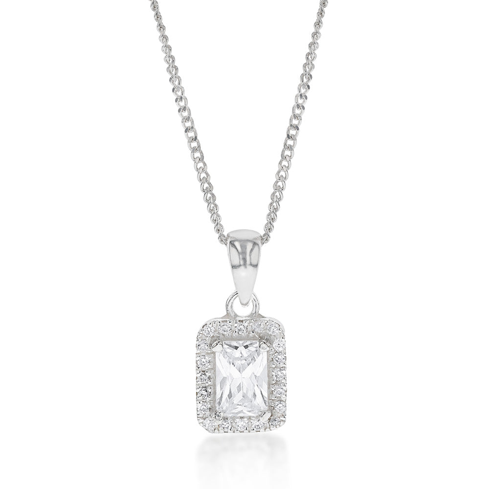 Sterling Silver Cubic Zirconia Square Halo Pendant
