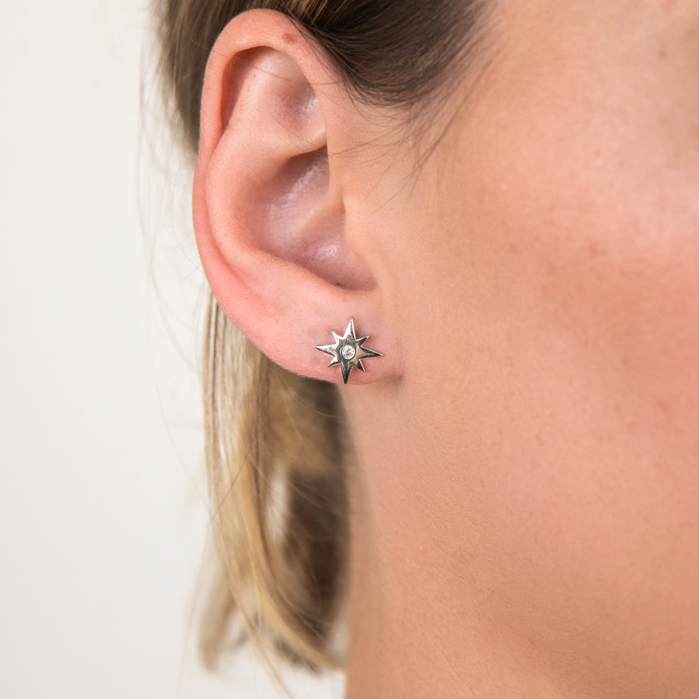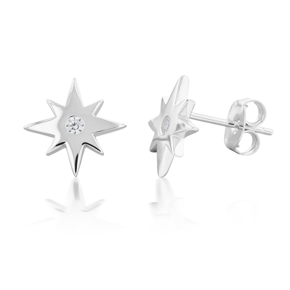 Sterling Silver Cubic Zirconia Star Stud Earrings