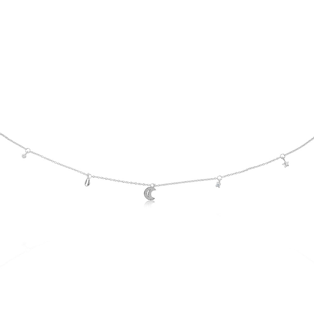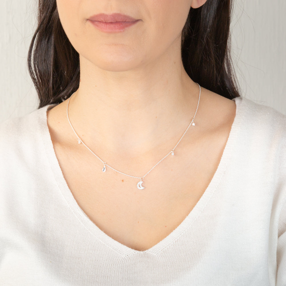 Sterling Silver Cubic Zirconia Stars And Moon Charms On 45cm Chain