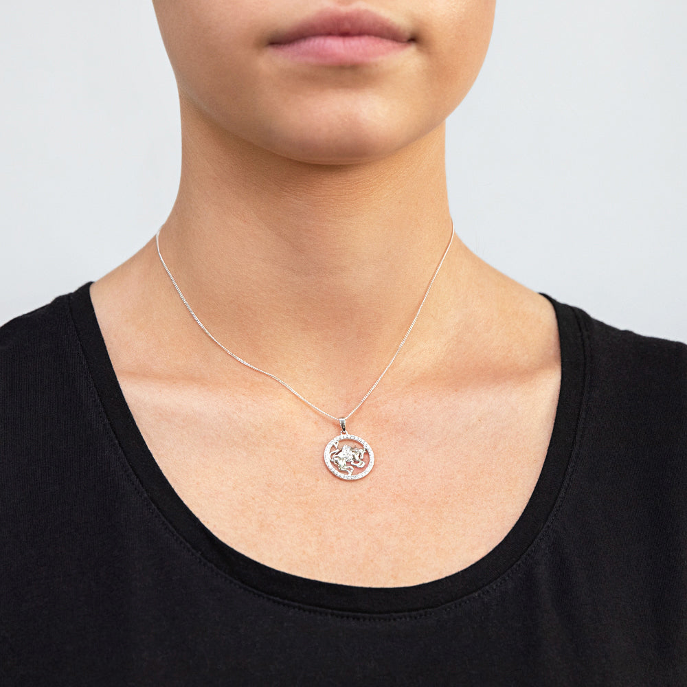 Sterling Silver Cubic Zirconia Taurus Horoscope Round 19mm x 26mm Pendant