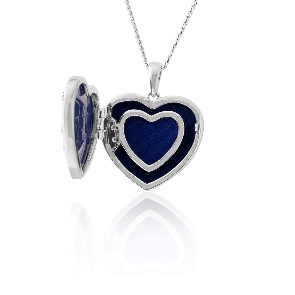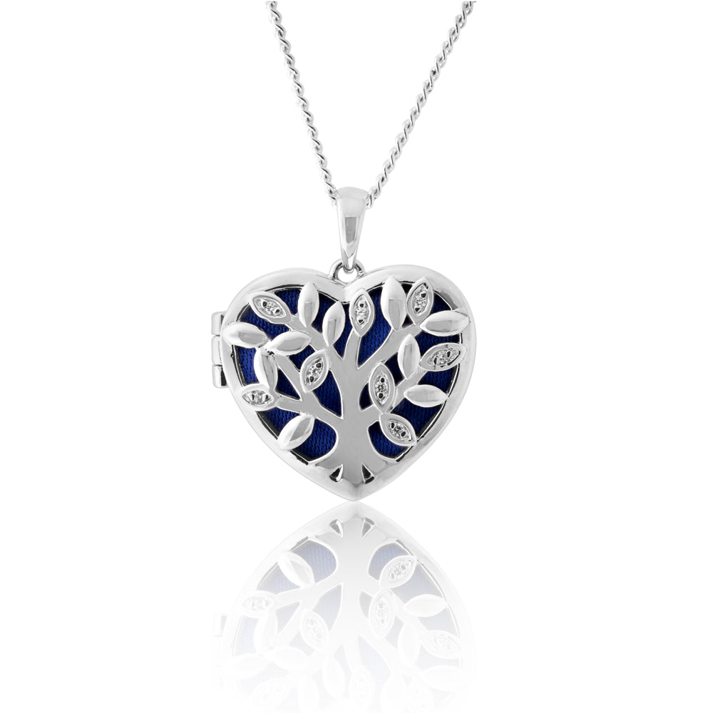 Sterling Silver Cubic Zirconia Tree of Life Locket with Blue Velvet Pendant