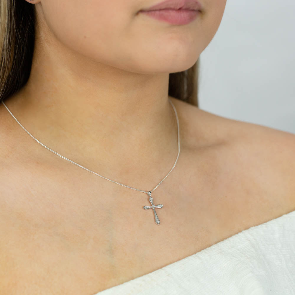 Sterling Silver Diamond Cross with 5 Brilliant Diamonds