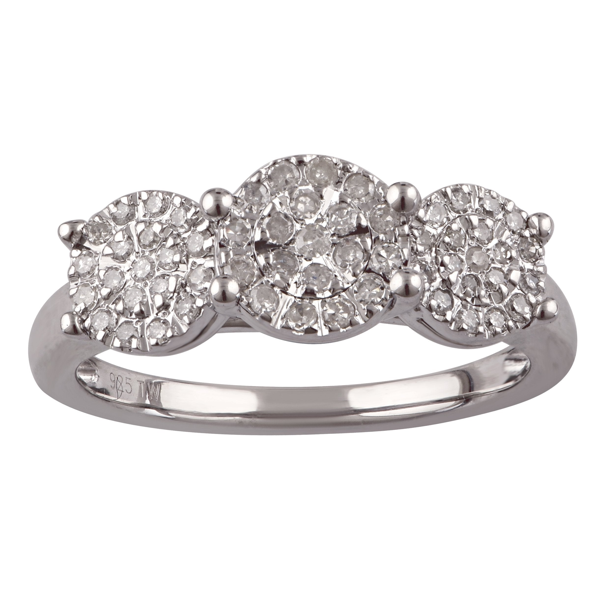 Sterling Silver Diamond Trilogy Ring with 57 Brilliant Cut Diamonds "2.5 Carat Look"