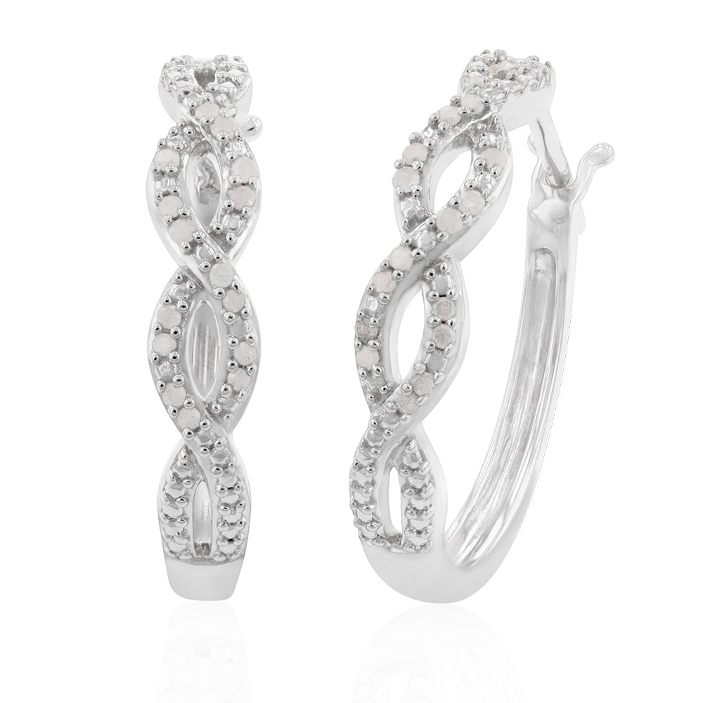 Sterling Silver Diamond Twist Hoop Earrings