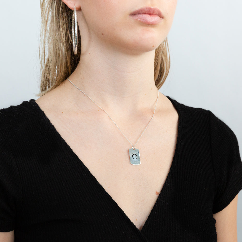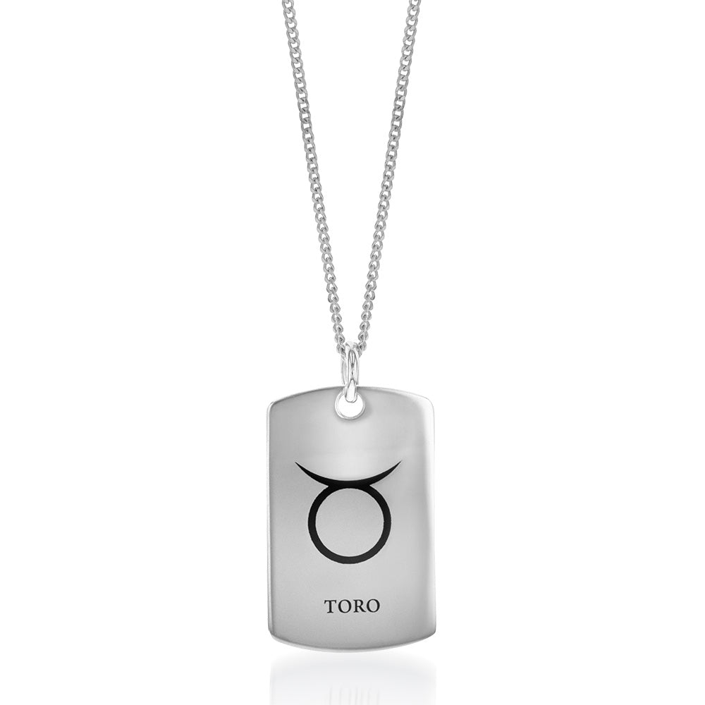 Sterling Silver Dog Tag With Taurus Zodiac/Star Sign Pendant