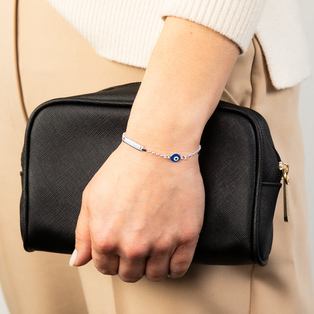 Sterling Silver Evil Eye ID 16cm Kids Bracelet