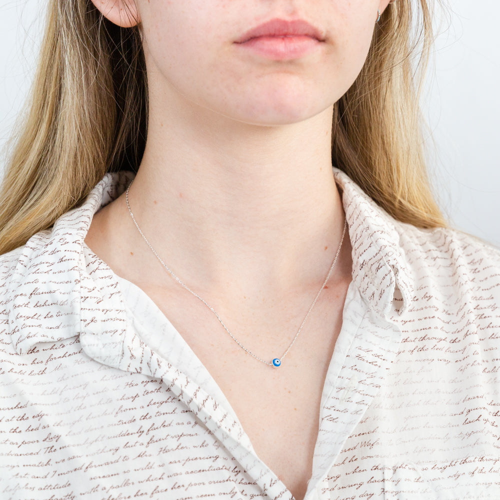 Sterling Silver Evil Eye Pendant On 42+3cm Chain