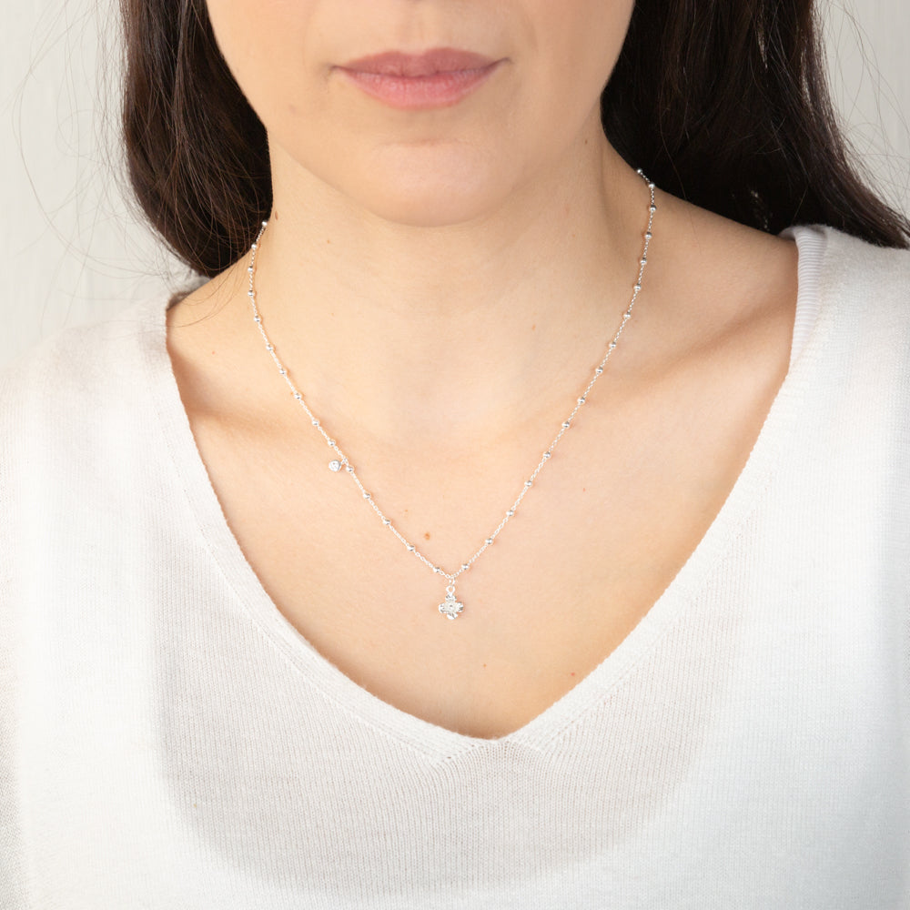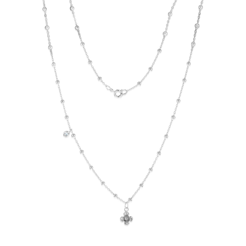 Sterling Silver Flower And Cubic Zirconia Charms On 45cm Balls Chain
