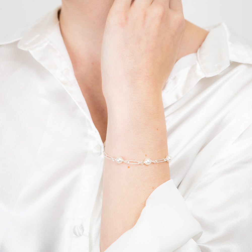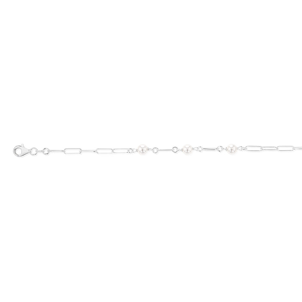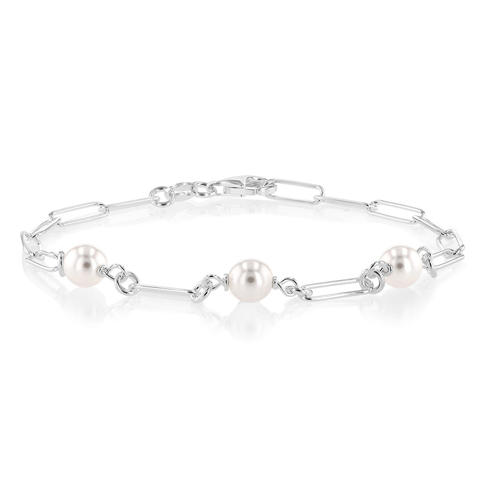 Sterling Silver Fresh Water Pearl Paperclip 19cm Bracelet