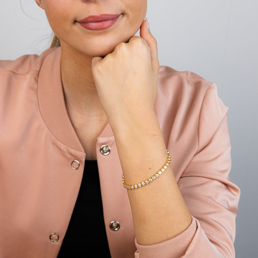 Sterling Silver Gold Plated 3mm Bezel White Cubic Zirconia 16+3cm Bracelet