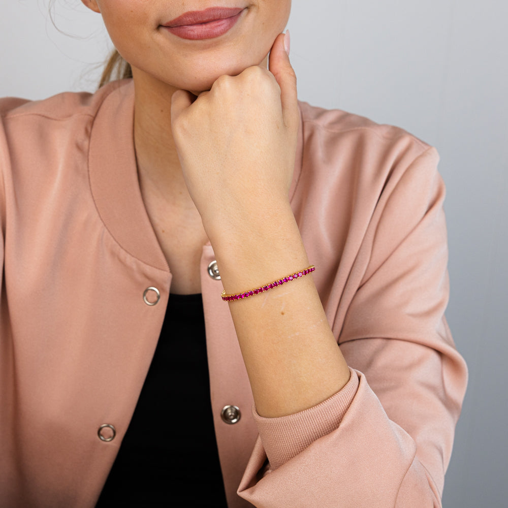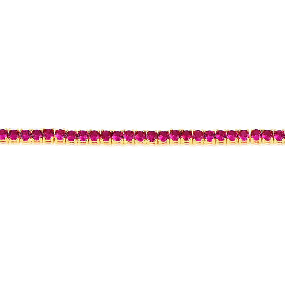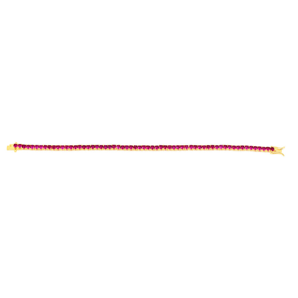 Sterling Silver Gold Plated 3mm Ruby Colored Cubic Zirconia 19cm Bracelet