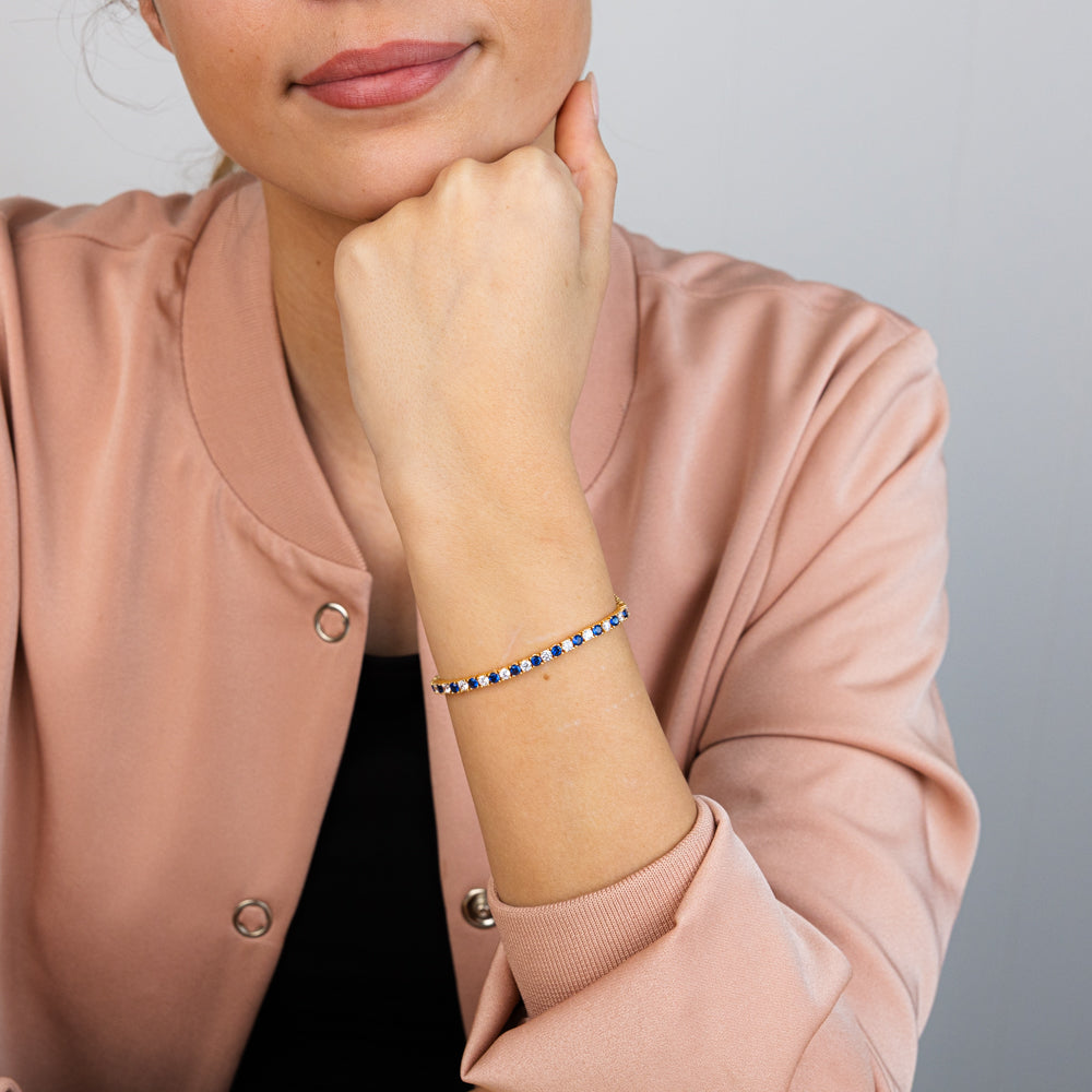 Sterling Silver Gold Plated 3mm White And Sapphire Blue Cubic Zirconia 19cm Bracelet