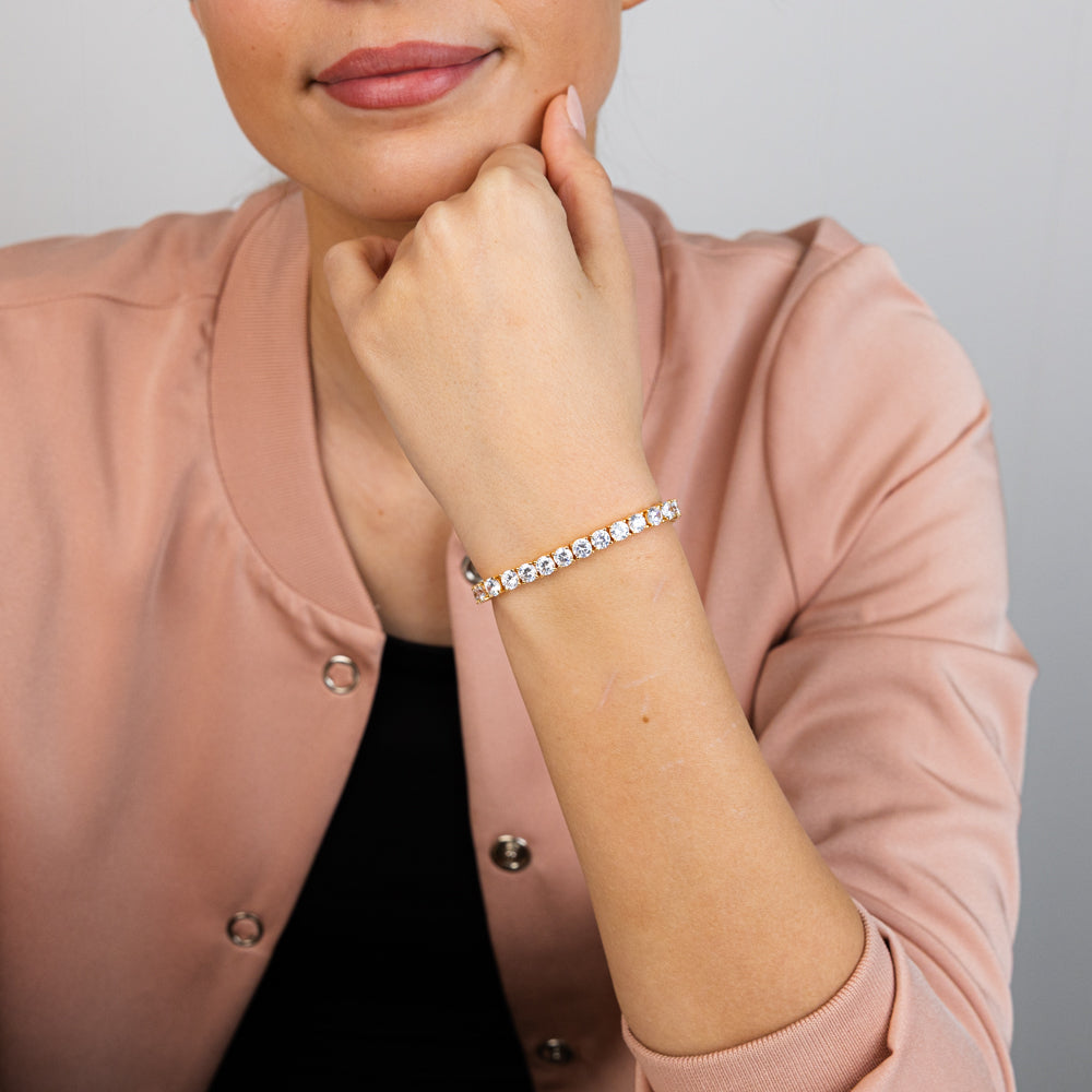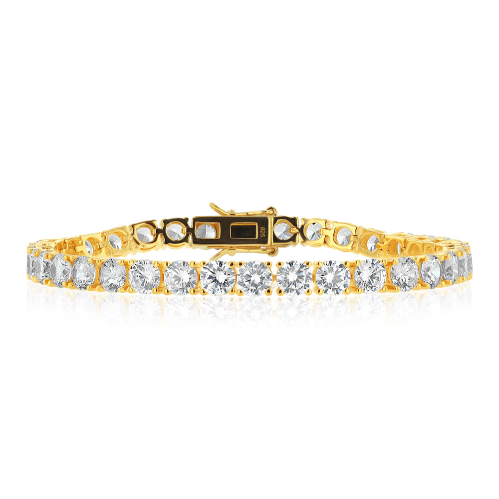 Sterling Silver Gold Plated 5mm Cubic Zirconia Tennis 19cm Bracelet