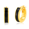 Sterling Silver Gold Plated Black Enamel 15mm Hoop Earrings