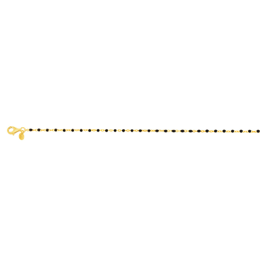 Sterling Silver Gold Plated Black Enamel Fancy 17+3cm Bracelet