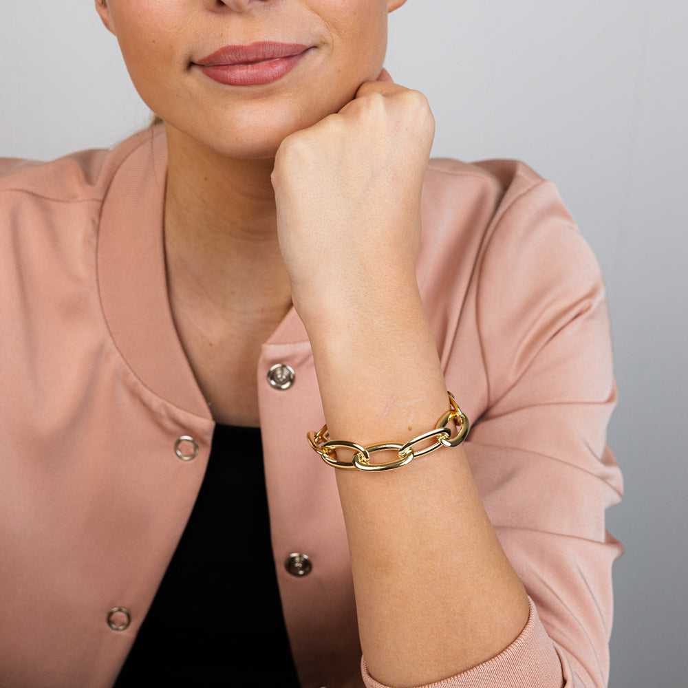 Sterling Silver Gold Plated Chunky 18+1.5cm Bracelet