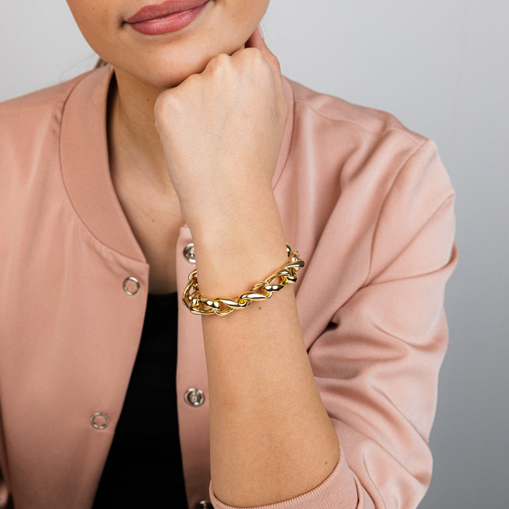 Sterling Silver Gold Plated Chunky Twisted 19cm Bracelet