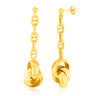 Sterling Silver Gold Plated Circles On Anchor Chain Drop Earrings