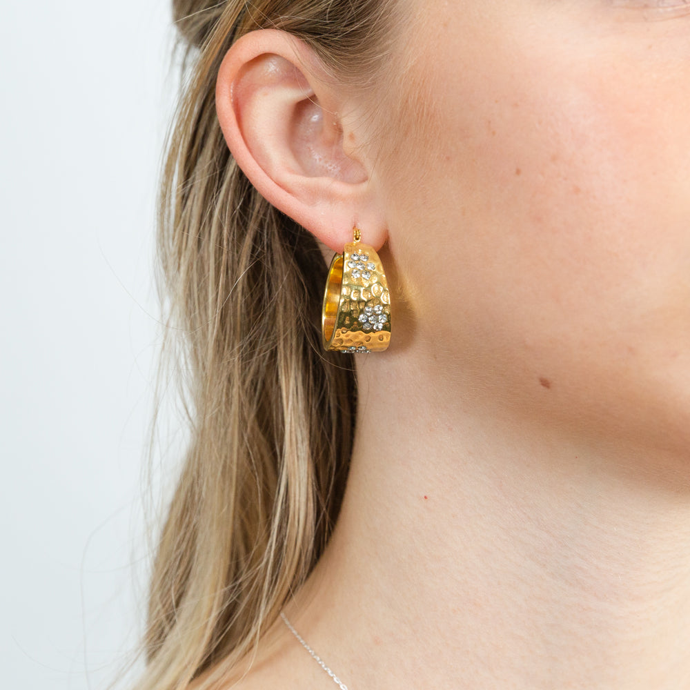 Sterling Silver Gold Plated Cubic Zirconia Broad Hoop Earrings