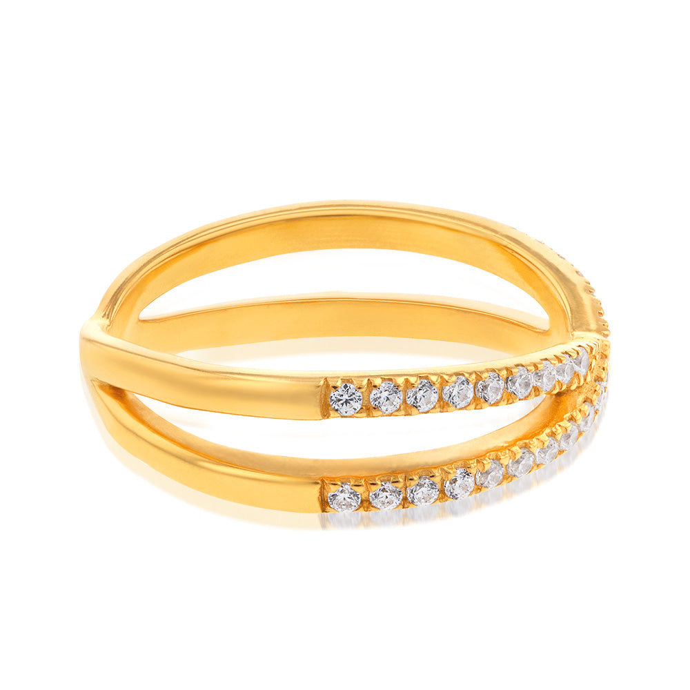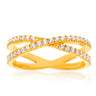 Sterling Silver Gold Plated Cubic Zirconia Cross Over Ring