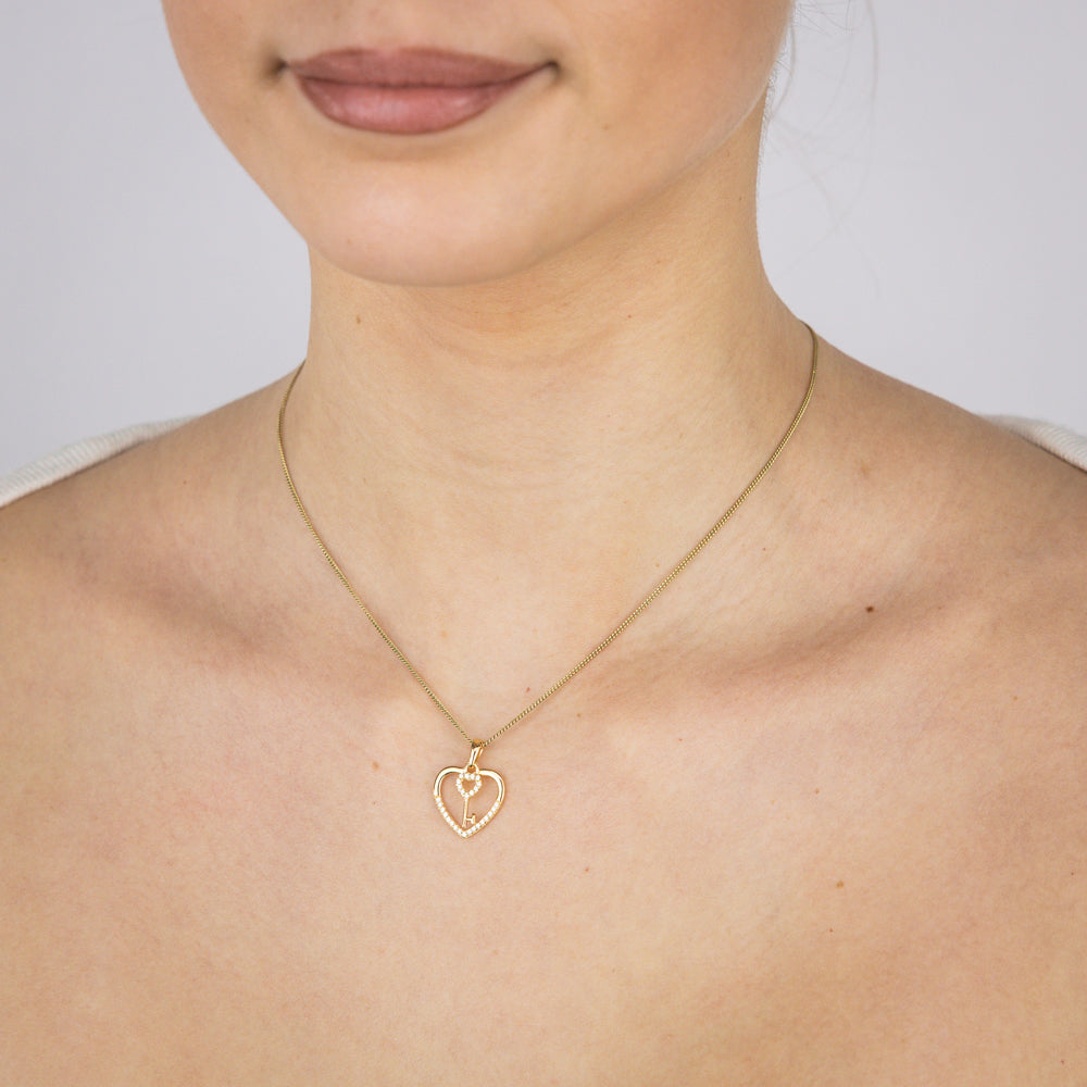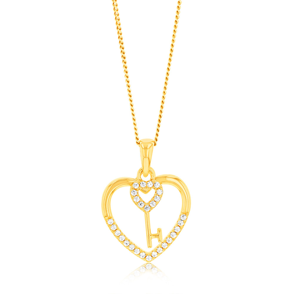 Sterling Silver Gold Plated Cubic Zirconia Key And Heart Pendant
