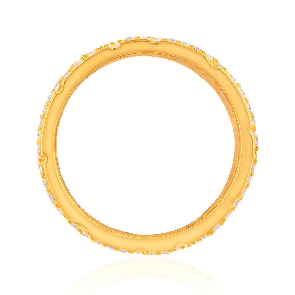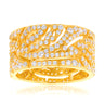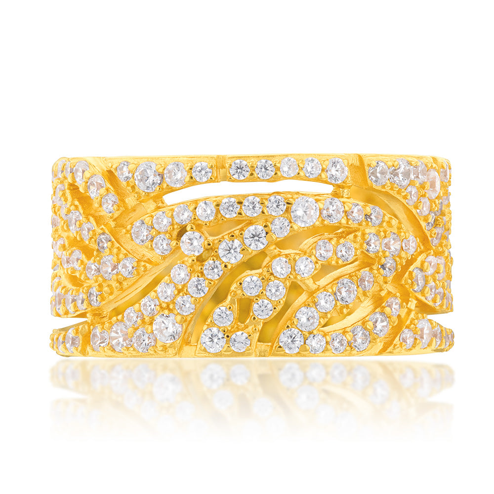 Sterling Silver Gold Plated Cubic Zirconia On Feather Broad Ring