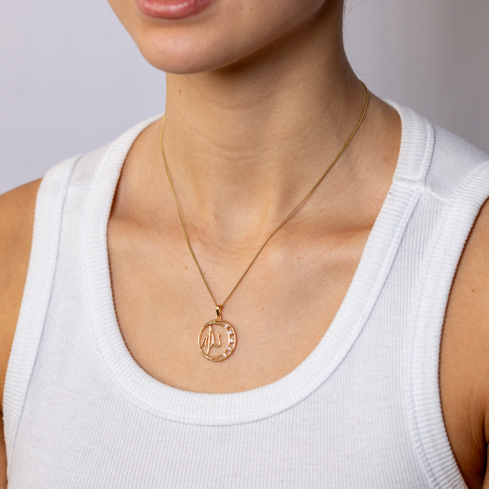 Sterling Silver Gold Plated CZ Crescent Moon Allah Pendant