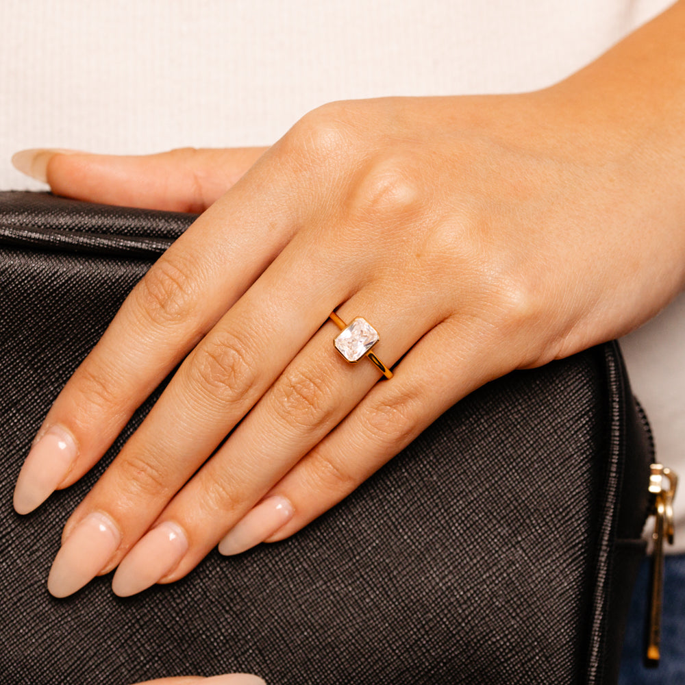 Sterling Silver Gold Plated CZ Cushion Cut Ring