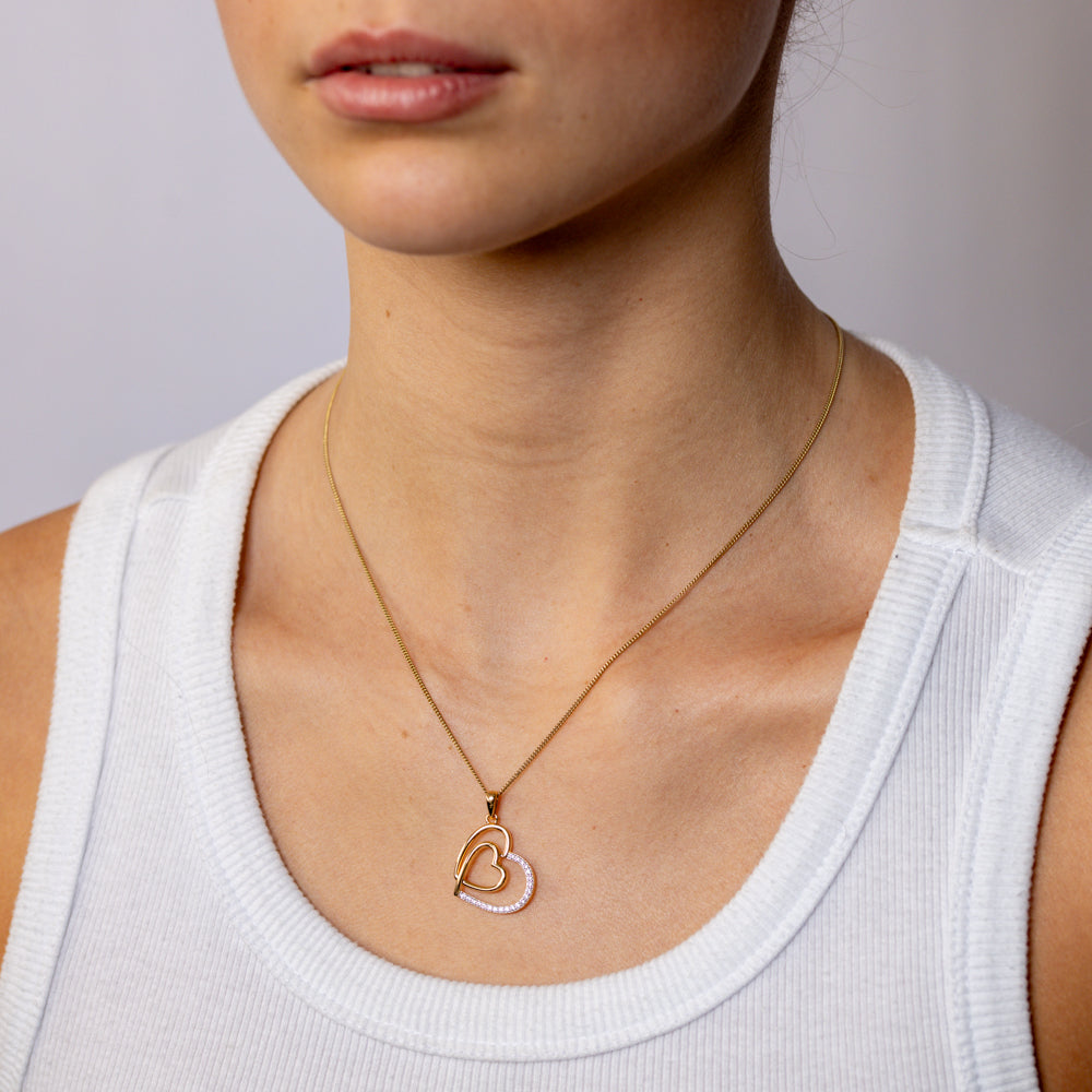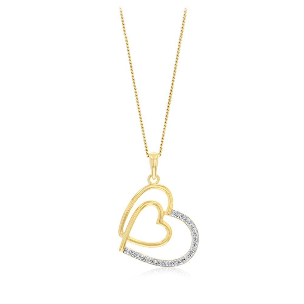 Sterling Silver Gold Plated CZ Double Heart Pendant