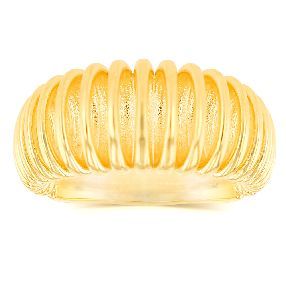 Sterling Silver Gold Plated Domed Ridged Chunky Ring
