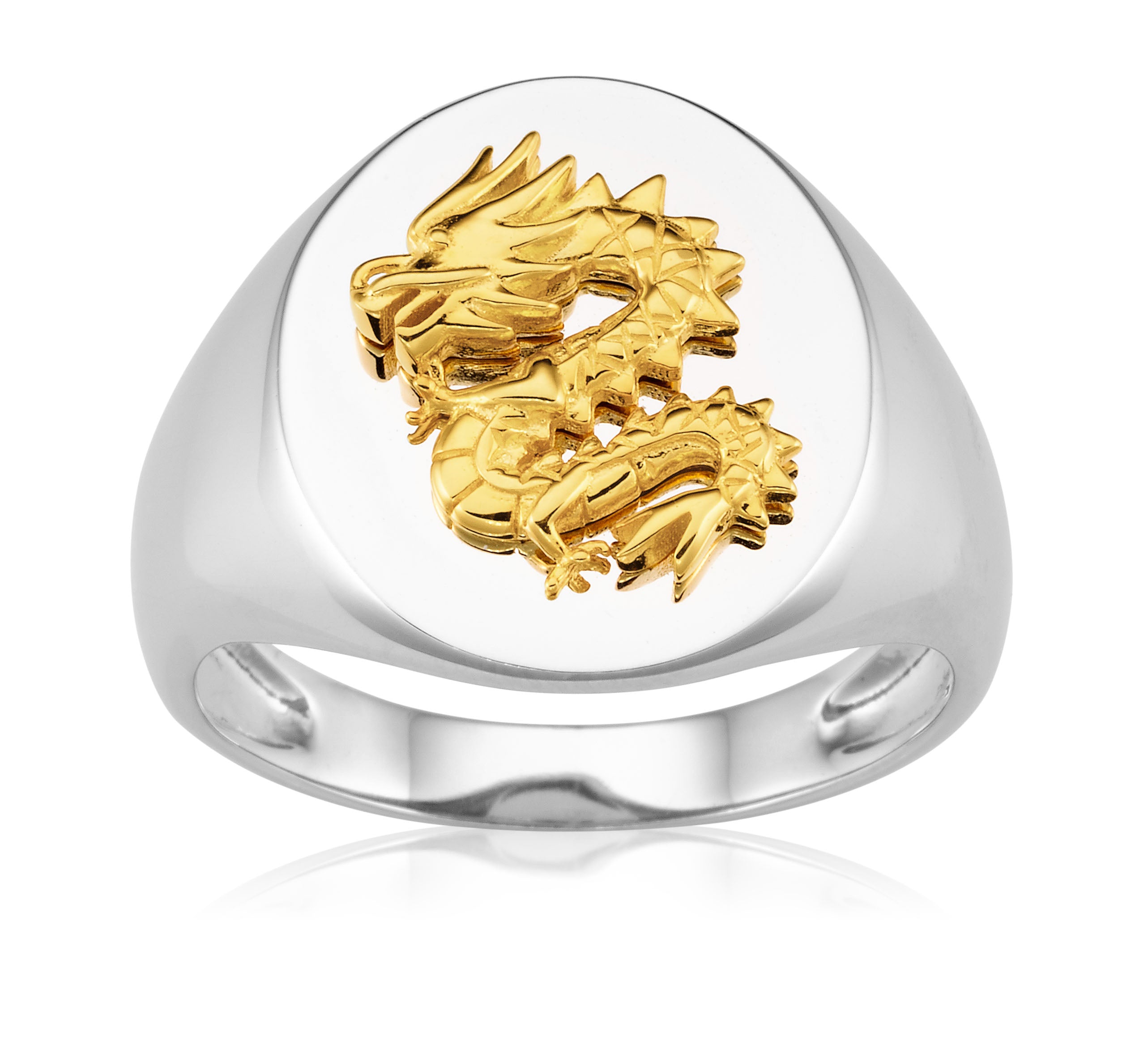 Sterling Silver Gold Plated Dragon Gents Signet Ring