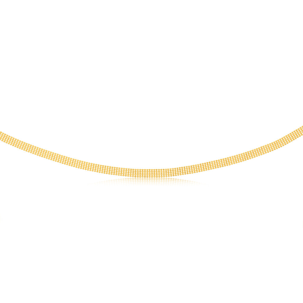 Elevate your style with our Sterling Silver Gold Plated Fancy 40cm Choker Chain, a versatile and timeless accessory that's perfect for adding a touch of elegance to any outfit. Crafted with meticulous attention to detail from high-quality sterling silver and finished in a luxurious gold plating, this choker chain boasts a sleek and sophisticated design that gracefully encircles your neck. The 40cm length is ideal for creating a chic and minimalist look, and the adjustable clasp ensures a comfortable fit tailored to your preference. Whether worn alone as a statement piece or layered with other necklaces for a more personalised style, this choker chain is a classic addition to your jewellery collection.