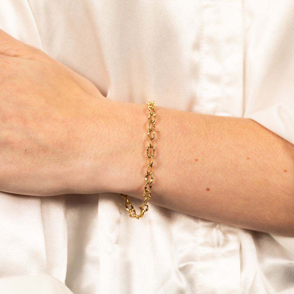 Sterling Silver Gold Plated Fancy Diamond Cut 19cm Bracelet