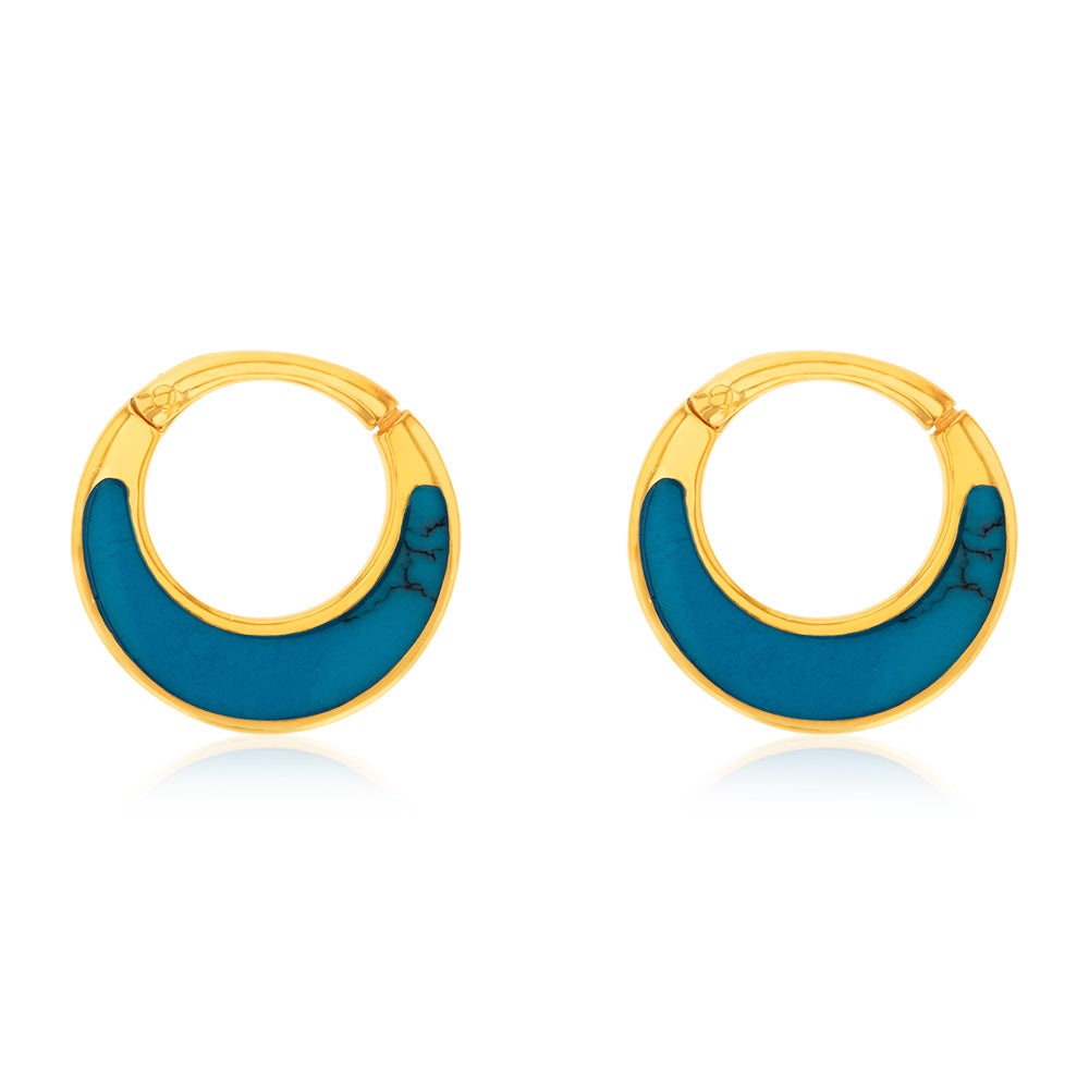 Sterling Silver Gold Plated Fancy Natural Turquoise Hoop Earrings