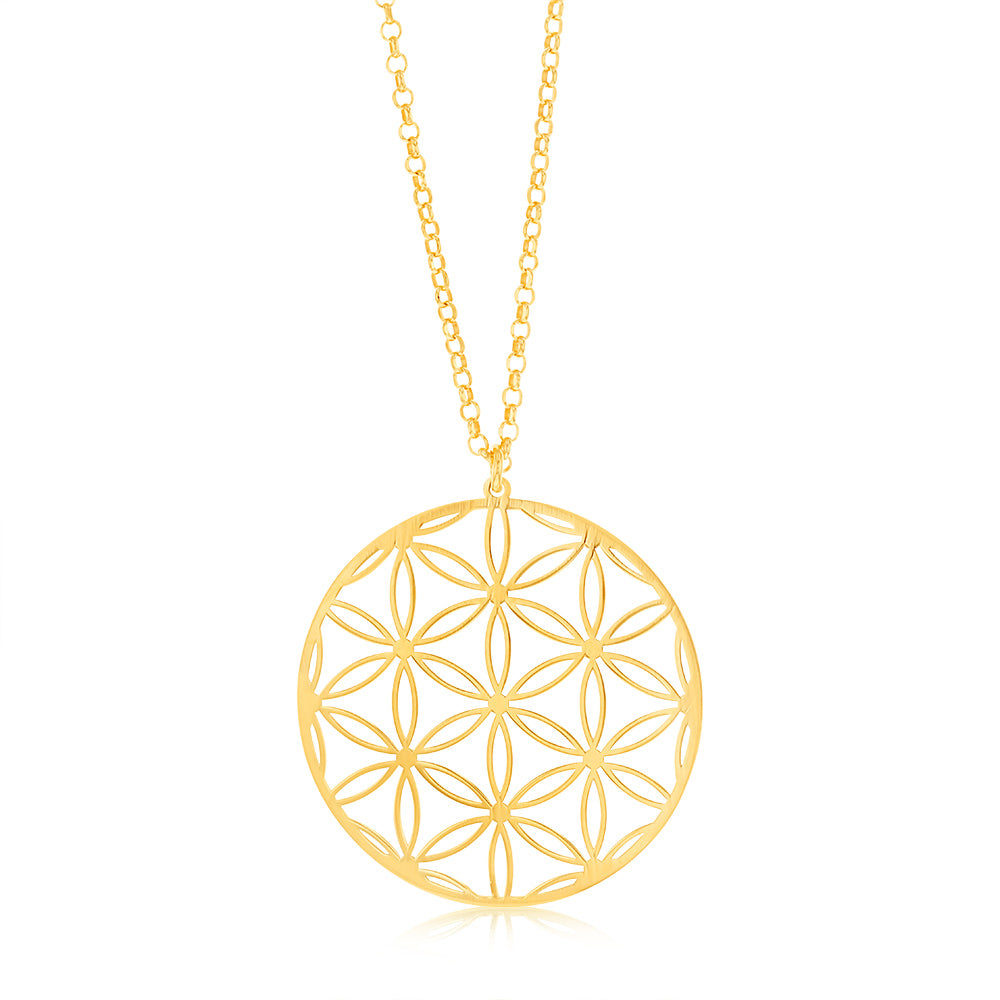 Sterling Silver Gold Plated Flower Of Life Pendant On 45+3cm Chain