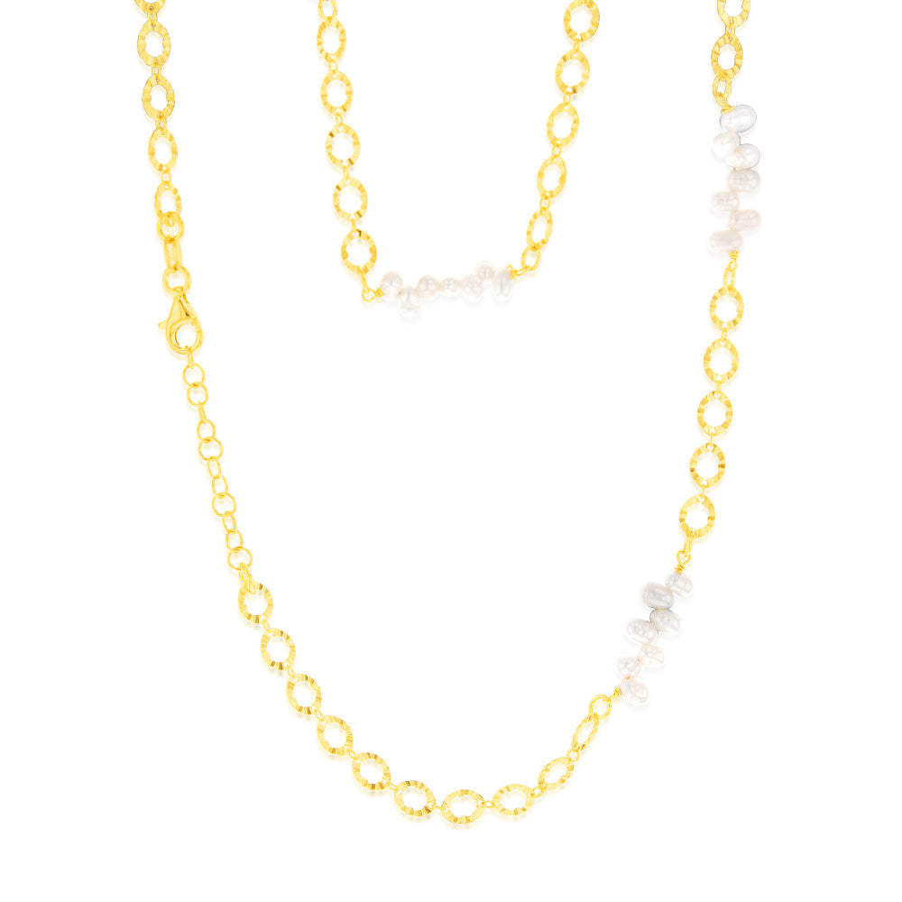 Sterling Silver Gold Plated Fresh Water Pearls And Fancy Links 42+3cm Chain
