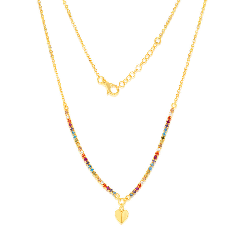 Sterling Silver Gold Plated Heart And Multicolour Beads 45cm Chain