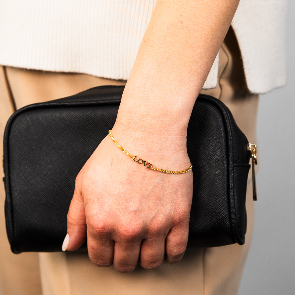 Sterling Silver Gold Plated "Love" 19cm Bracelet