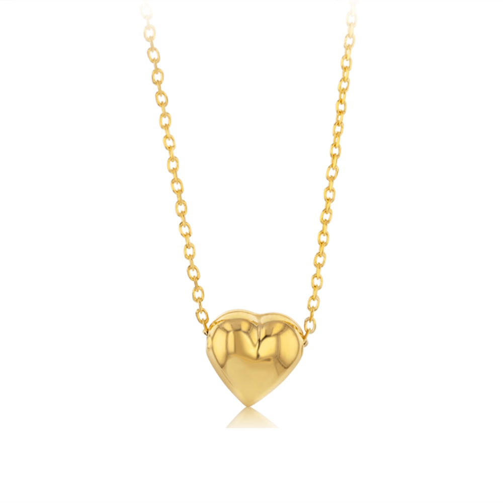 Sterling Silver Gold Plated Mini Puffed Heart Pendant On Chain