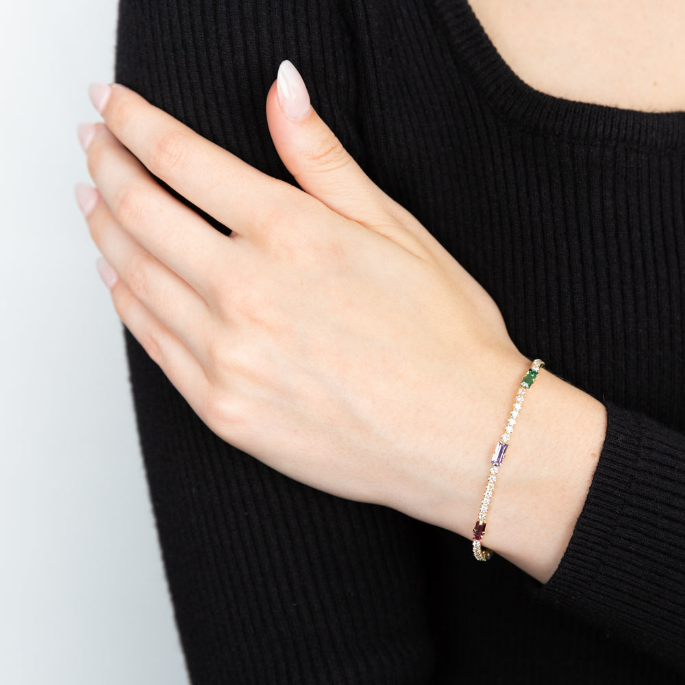 Sterling Silver Gold Plated Multicolour Beads 16+3cm Bracelet
