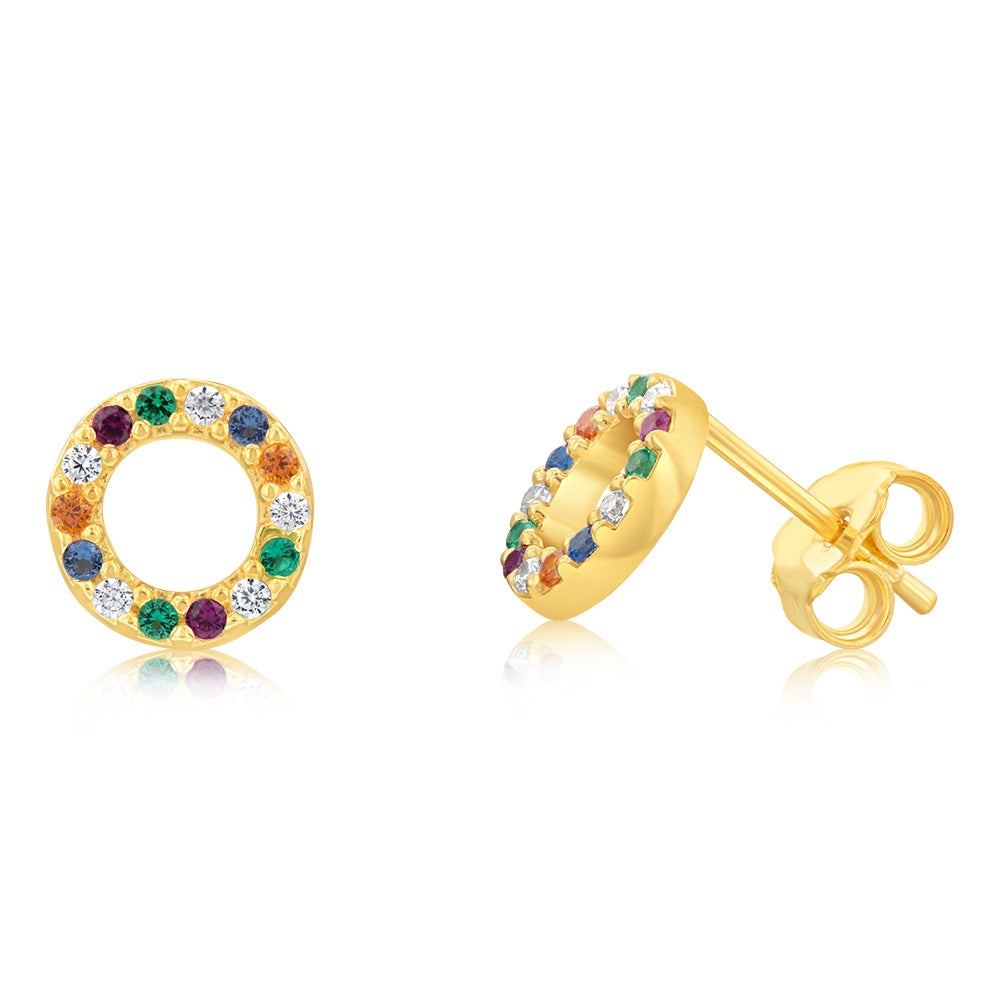 Sterling Silver Gold Plated Multicolour Circle Of Life Stud Earrings