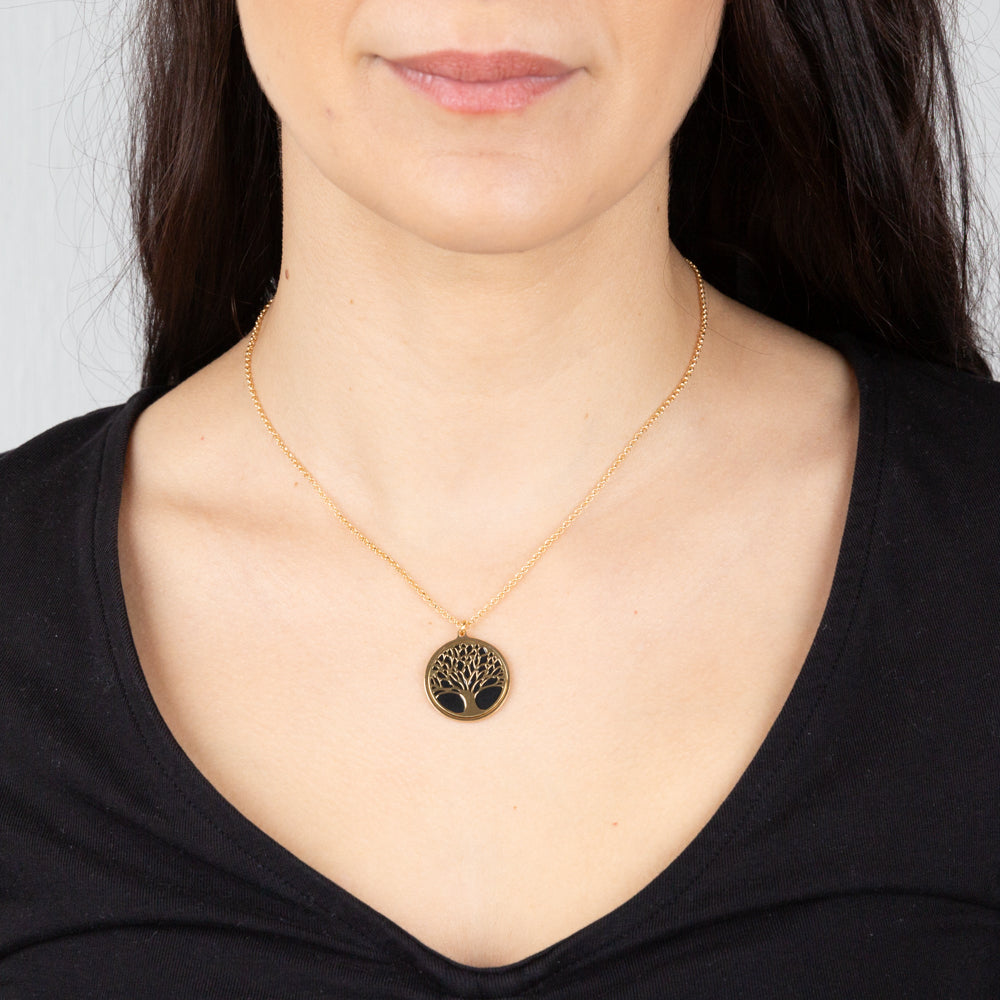 Sterling Silver Gold Plated Onix Tree Of Life Pendant on 45cm Chain