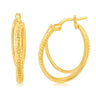 Sterling Silver Gold Plated Patterned Double Hoop Earrings