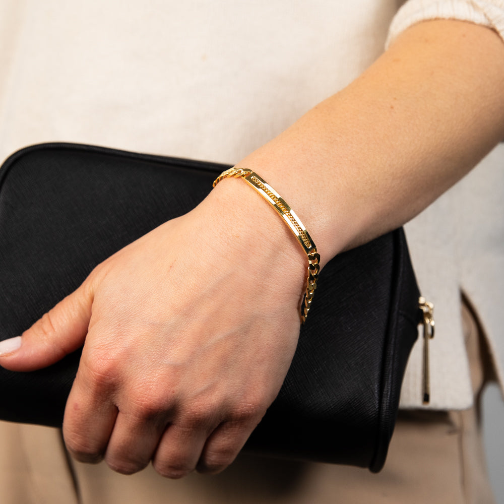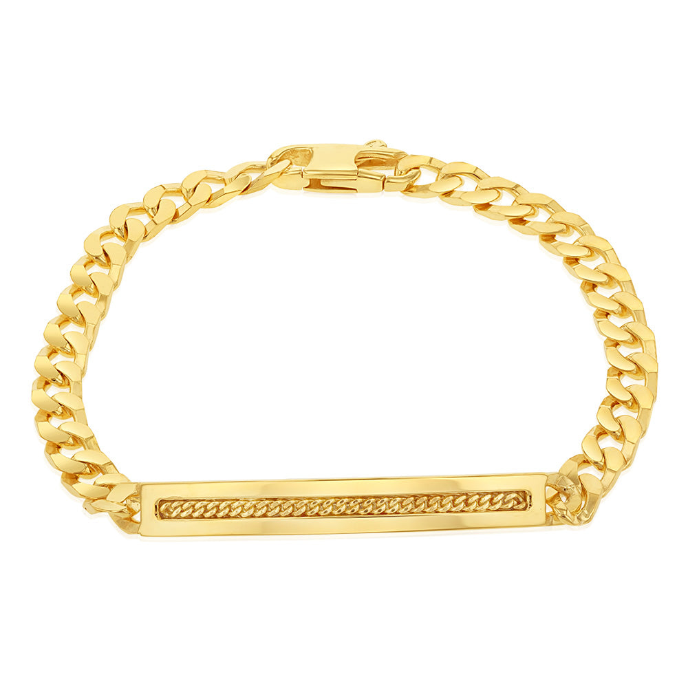 Sterling Silver Gold Plated Patterned ID Curb 19cm Bracelet