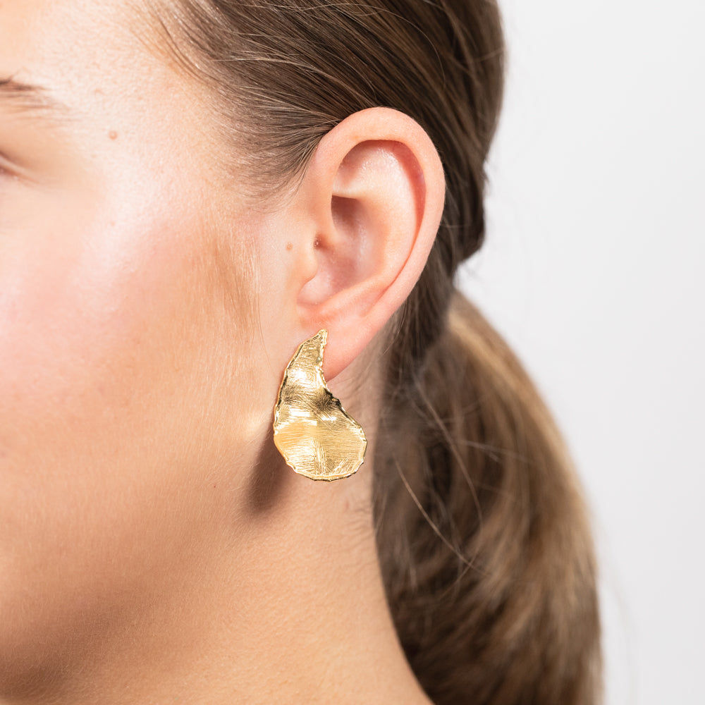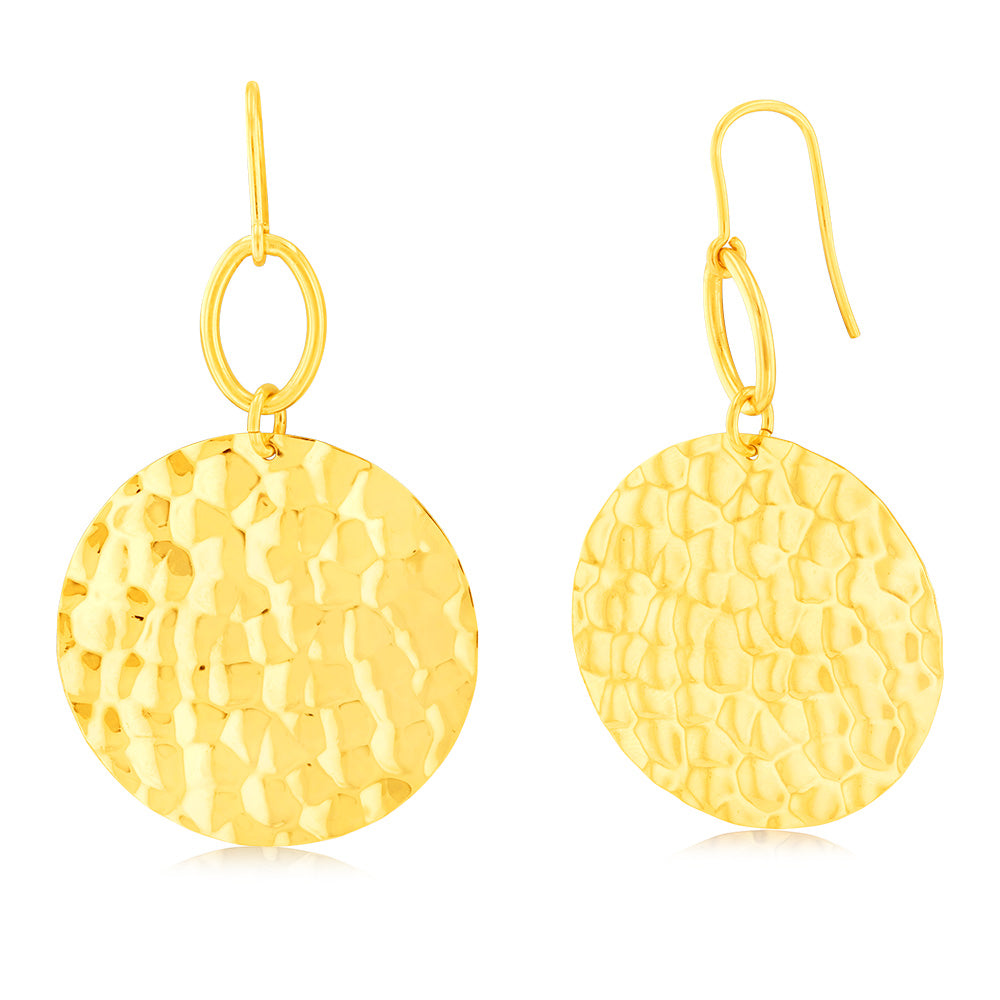 Sterling Silver Gold Plated Patterned Round Disc Hook Earrings