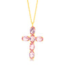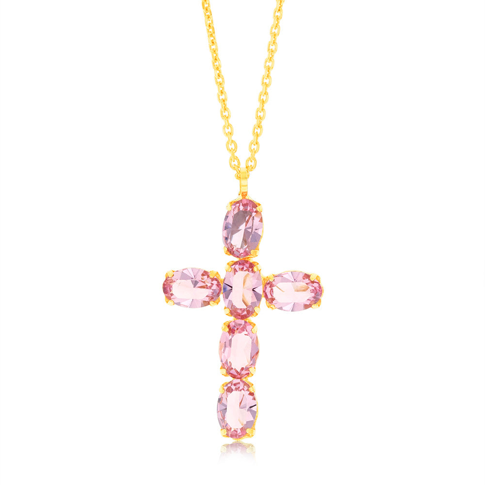 Sterling Silver Gold Plated Pink Crystal Fancy Cross Pendant On 42+3cm Chain