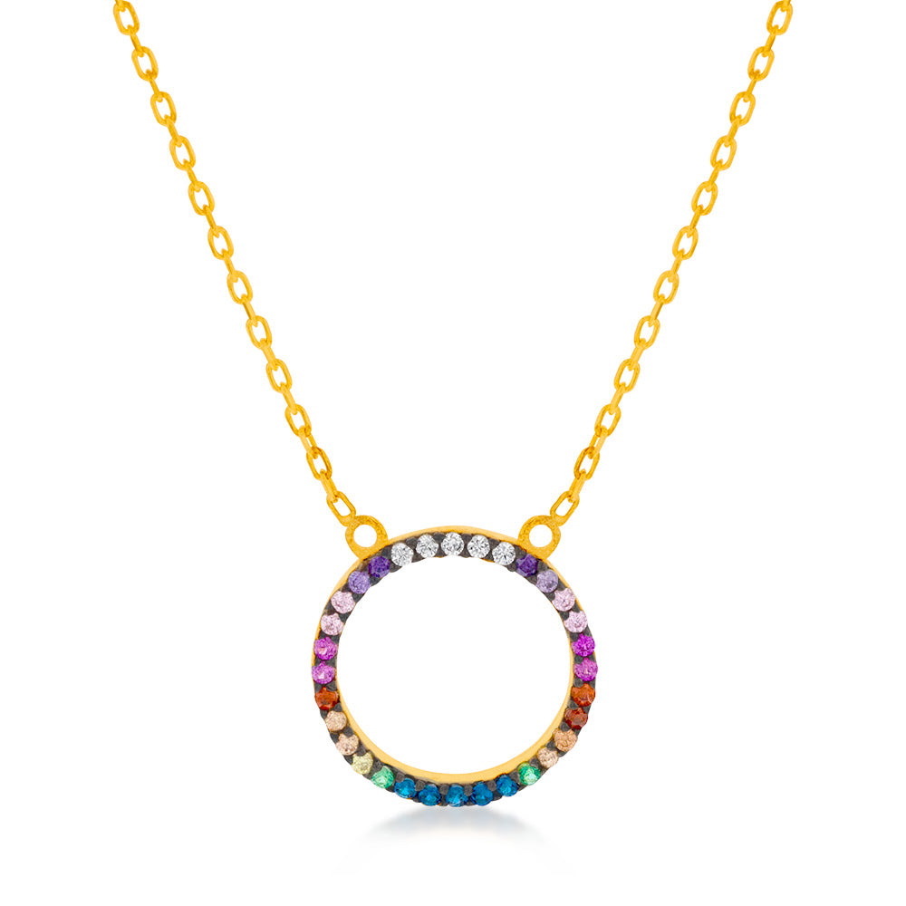 Sterling Silver Gold Plated Rainbow Multicolour Cubic Zirconia Pendant On Chain