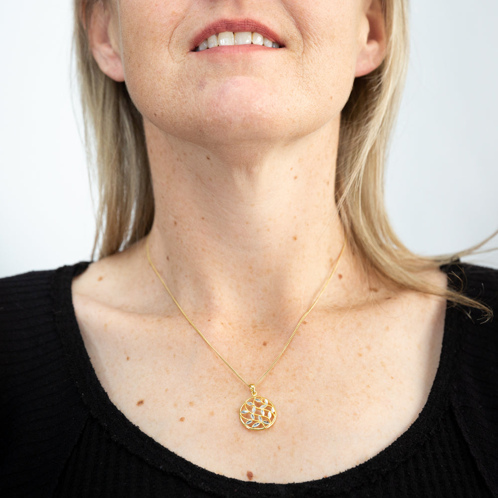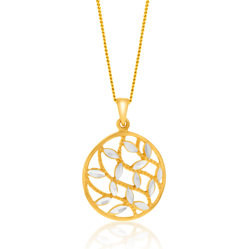 Sterling Silver Gold Plated Round Diamond Cut Patterned Pendant
